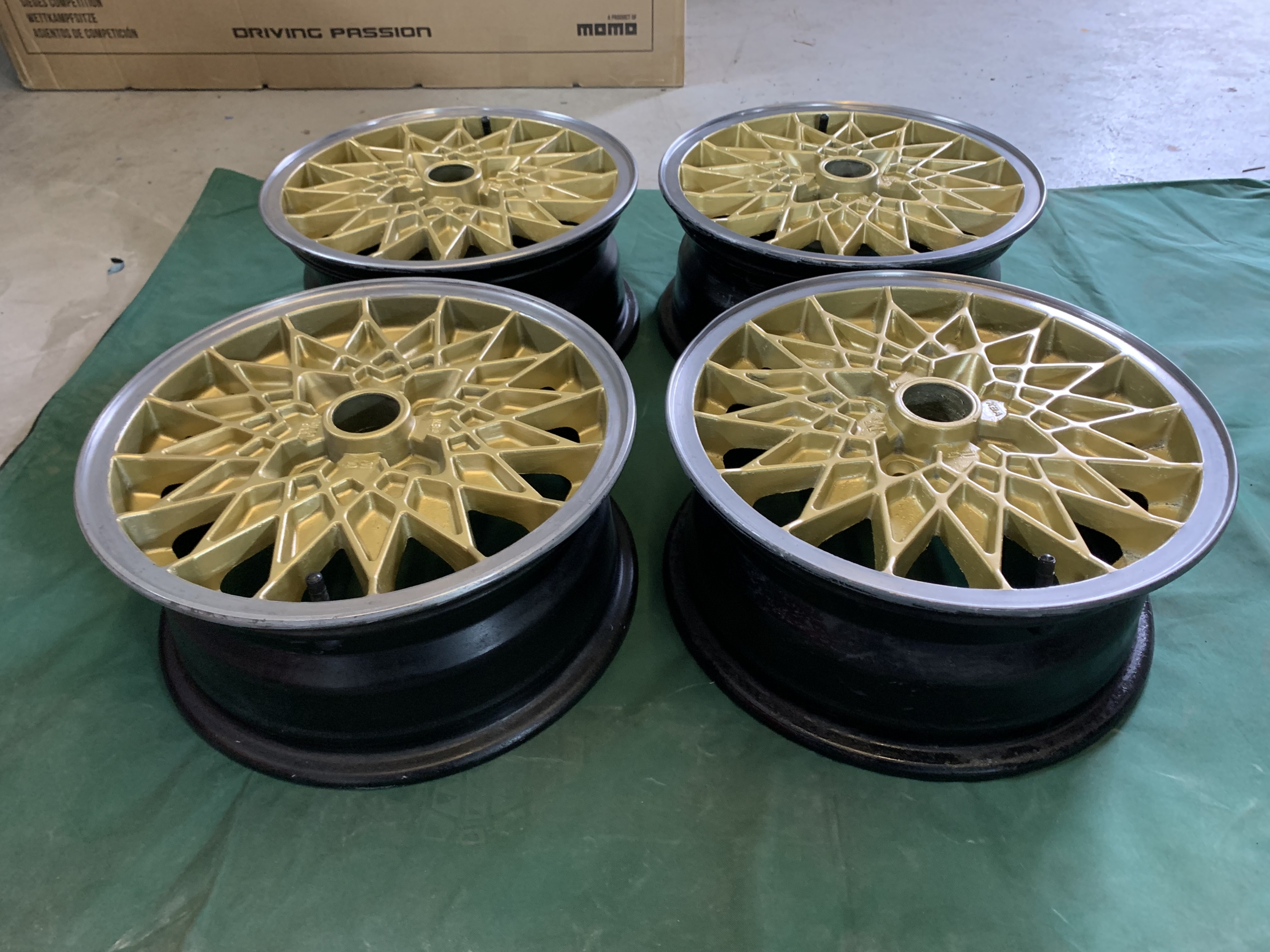 In Gold with a polished lip and black and gold backs